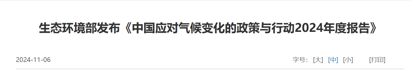 生態(tài)環(huán)境部發(fā)布《中國(guó)應(yīng)對(duì)氣候變化的政策與行動(dòng)2024年度報(bào)告》