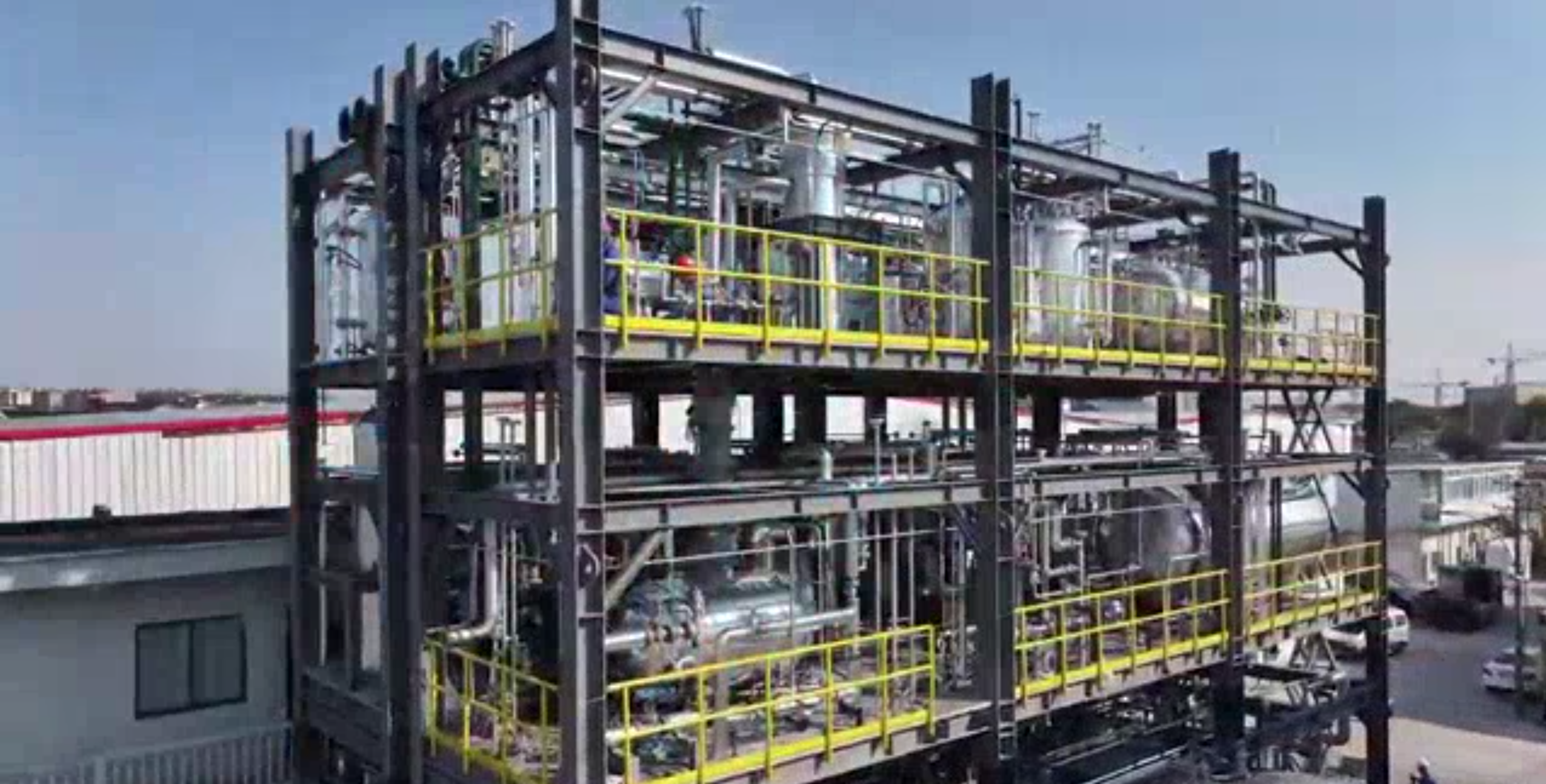 中福為EVE Malaysia提供的首套Full Modularization NMP提純裝置順利完成全模塊拼裝連接,即將集港出海
