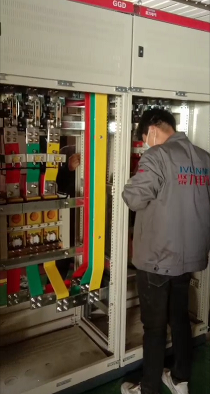 項(xiàng)目施工進(jìn)行中!聚力電氣有限公司的技術(shù)人員在安裝630干式變壓器。