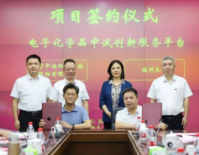 在簽約儀式上,連江縣城投集團(tuán)與天津中福環(huán)??萍脊煞萦邢薰竞炗喠穗娮踊瘜W(xué)品產(chǎn)業(yè)項(xiàng)目合作協(xié)議;福州大學(xué)與天津中福環(huán)??萍脊煞萦邢薰竞炗嗠娮踊瘜W(xué)品中試創(chuàng)新服務(wù)平臺(tái)合作協(xié)議。三方將通過(guò)優(yōu)勢(shì)互補(bǔ),構(gòu)建“學(xué)、研、產(chǎn)、政”深度融合的協(xié)同創(chuàng)新模式,共同打造“研發(fā)-中試-量產(chǎn)-回收”綠色閉環(huán)的電子化學(xué)品產(chǎn)業(yè)生態(tài)集群,助力提升我國(guó)高端電子化學(xué)品的自主可控能力和產(chǎn)業(yè)競(jìng)爭(zhēng)力。